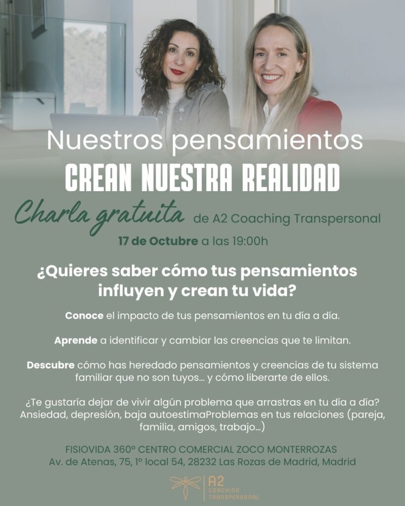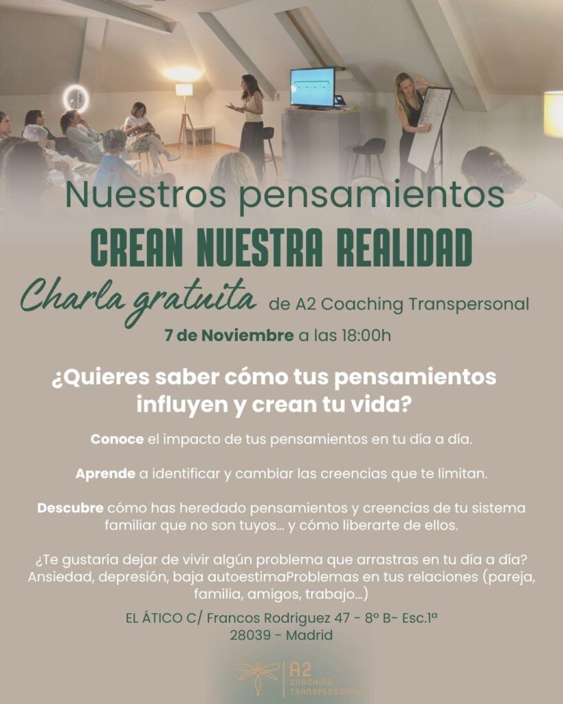 - Charla inspiradora: comprenderás cómo funciona la mente, el ego y las creencias que nos limitan, y descubrirás qué te impide vivir desde tu ser auténtico.